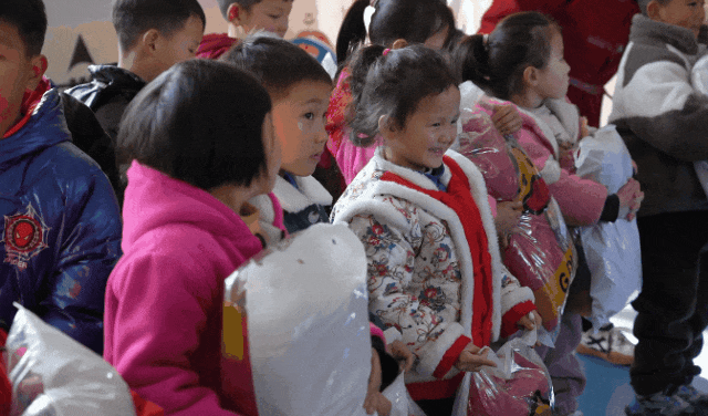 捐赠环节中,志愿者们将一件件精心筹备的棉衣逐一分发到孩子们手中。崭新的衣物、厚实的保暖设计,让孩子们脸上洋溢着灿烂笑容,迫不及待地试穿新衣,校园里瞬间涌动着阵阵暖流。