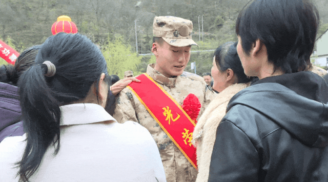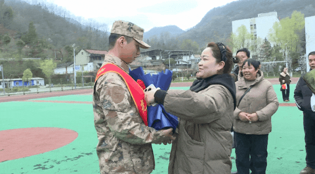 仪式上,为新兵佩戴光荣花、系绶带、赠送纪念品,同时为立功军人家属颁发立功喜报,讲解退役优抚优待相关政策。新兵与家人亲友纷纷合影留念,声声叮嘱萦绕耳畔,句句牵挂饱含期盼;母亲亲手喂的饺子,裹着浓浓家味与深深眷恋。温馨的一幕幕,为这场青春远征增添了温暖的亲情底色。新兵代表表示,将牢记家乡嘱托,把满腔热忱化作报国行动,在军营建功立业,为军旗增辉、为家乡争光。